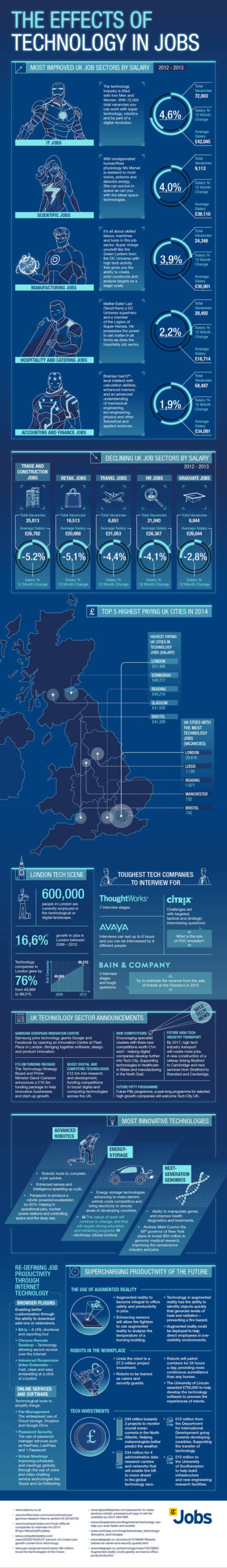 This excellent infographics from The Telegraph not only illustrates the growth witnessed by the technology sector over the last couple of years, but looks too at the effects of tech on other job sectors