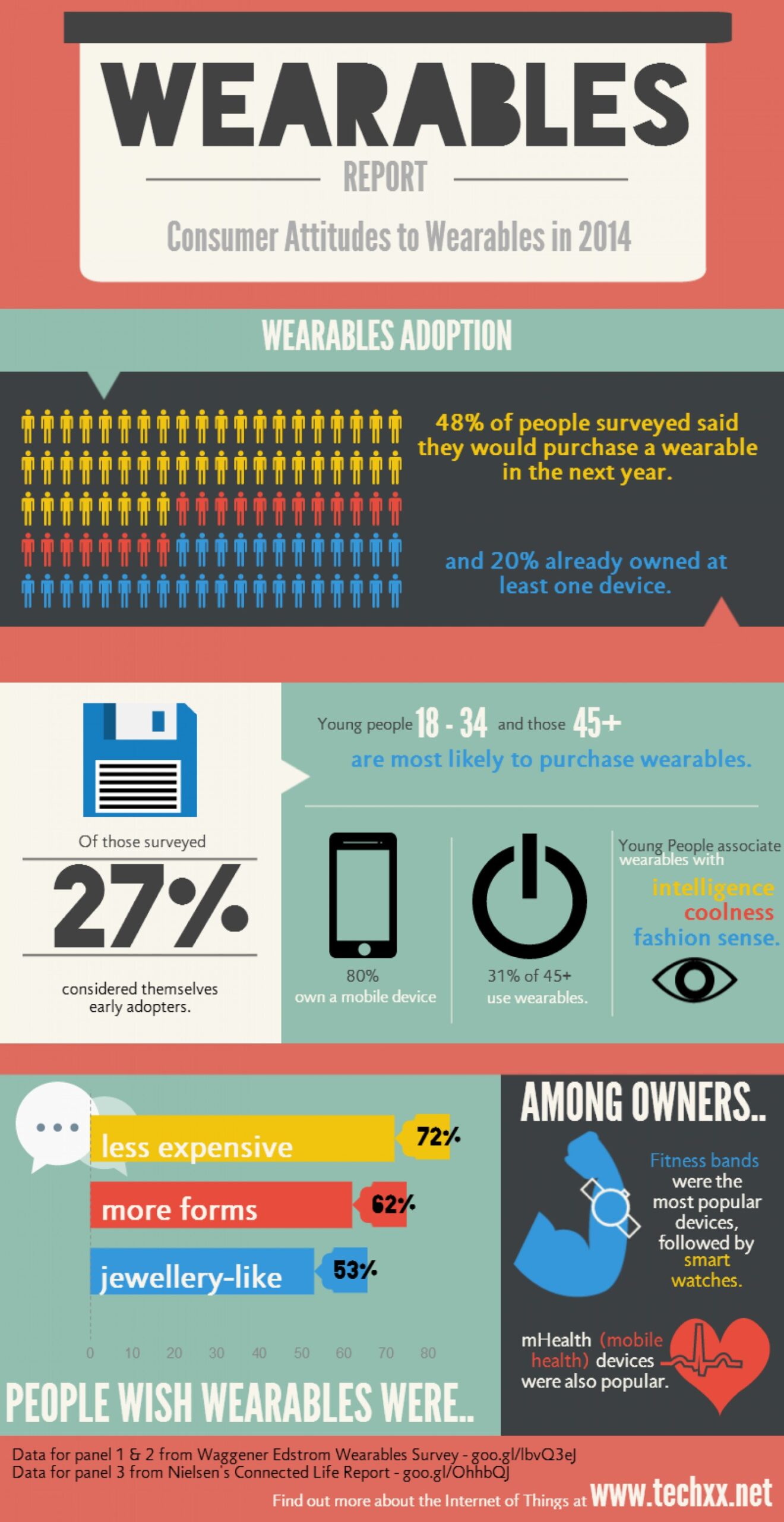 Wearable technology is the latest tech fad, with more and more people choosing to adopt it in the consumer space. As this infographic from Tech X shows, for the most part adoption remains centred around health related wearables which boost our motivation when it comes to taking daily exercise and monitor things such as sleep patterns.